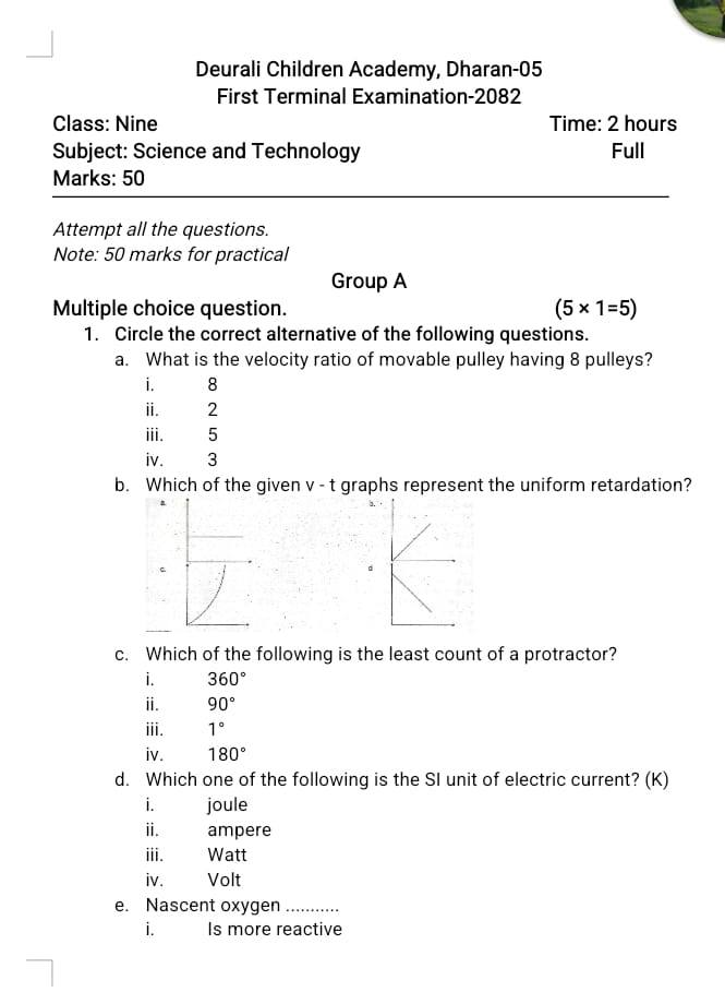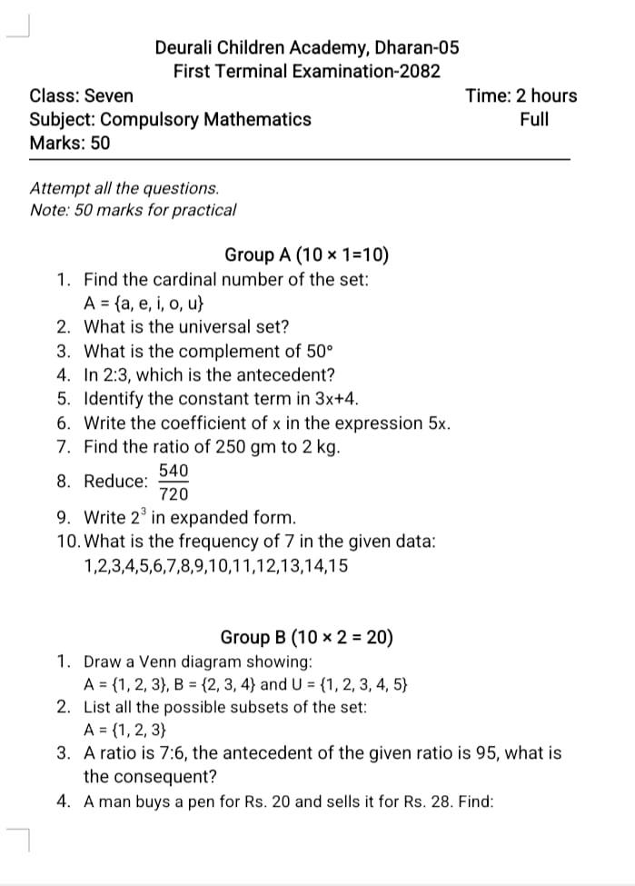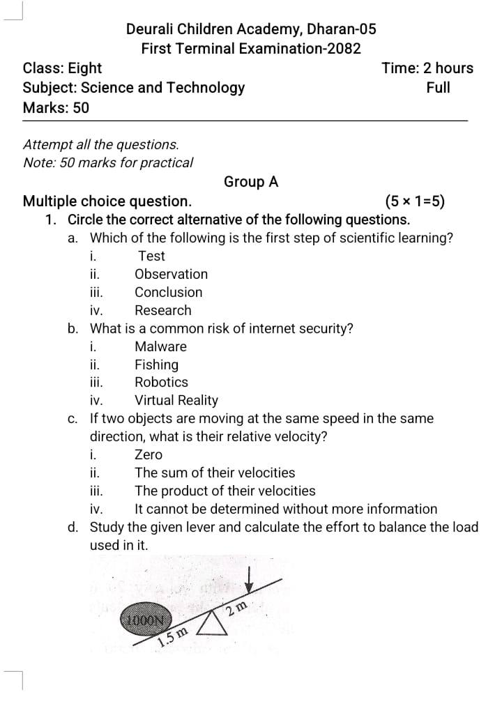 Access a complete collection of First Term Exam Papers for the academic year 2081, covering multiple grades and subjects. These papers are based on the latest curriculum and are useful for teachers, students, and schools.